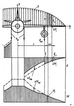 где п — число участков крыла от свободного конца до сечения z. Аналогично интегрируют эпюру M. Для участка крыла Δzi, определяют приращение изгибающего момента: