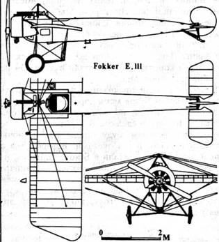 Истребитель Фоккер Е. III. На таком самолете М. фюн Рихтгофен начал карьеру истребителя 17.09.1916 г.