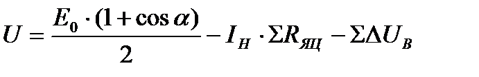 где a - угол открывания тиристоров, град; ΣUЯЦ - суммарное активное сопротивление якорной цепи, Ом; Σ∆UB - суммарное падение напряжения на СПП, В. Принимаем Σ∆UB = 2В.