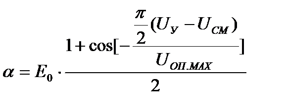 Характеристикой управления СИФУ называется зависимость угла открывания вентилей, а от напряжения управления Uy на входе СИФУ, или, а = f(Uy). Характеристика управления СИФУ, с учетом напряжения смещения. Описывается уравнением