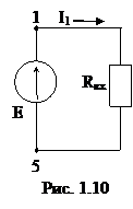 Путем последовательных преобразований необходимо определить входное сопротивление цепи относительно зажимов источника, то есть привести схему к виду рис. 1.10. В такой цепи, содержащей источник и приемник электрической энергии, напряжение на зажимах приемника равно ЭДС и ток, протекающий по цепи, может быть определен с помощью закона Ома: