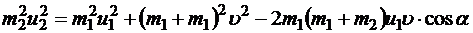 В результате подстановки в закон сохранения импульса получаем векторное равенство: