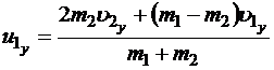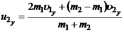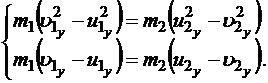 Шаг 4. Делим почленно первое уравнение на второе (мы имеем право это делать без опаски, т.к. мы делим на массы и разности проекций, которые при ударе должны быть разными):
