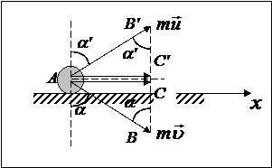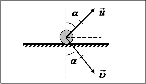 В этом случае оба необходимых механических состояния можно изобразить «в одном месте». Скорости Из упругости удара следует, что Докажем, что равенство углов падения и отражения достигается при упругом ударе о гладкую поверхность. При этом, как уже показывалось ранее, изменение касательной составляющей импульса частицы равно 0. Следовательно,
