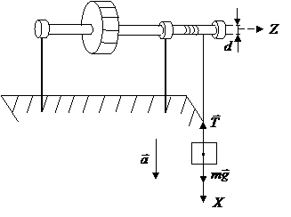 Установка состоит из махового колеса (диска), насаженного на вал, закрепленный в подшипниках. На шкив радиусом r наматывается нить, к концу которой крепится груз массой m (рис. 1). Под действием силы тяжести груз опускается и приводит систему во вращательное движение. Дойдя до нижней точки, груз поднимается на некоторую высоту за счет сил инерции вращательного движения. Запишем уравнения движения груза и махового колеса