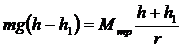 Момент сил трения Мтр можно определить, пользуясь законом изменения механической энергии. После того как груз опустится на полную длину нити, колесо, продолжая вращаться в прежнем направлении, будет наматывать нить на шкив, и груз поднимется вверх на некоторую высоту h 1 (рис. 2). Так как кинетическая энергия шарика в начальном (на высоте h) и конечном (на высоте h 1) положениях равна нулю, то изменение полной механической энергии шарика ∆ W определится изменением его потенциальной энергии