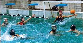 3. Приподнимание. После выбора места перед отражением броска вратарь принимает такую позу, в которой ему лучше отразить бросок. За счёт более интенсивной попеременной работы ног и разгибания корпуса вратарь поднимает из воды свой плечевой пояс. Причём, чем ближе к воротам нападающий с мячом, тем выше должен подниматься из воды вратарь, А, при нахождении нападающего с мячом на близком расстоянии от ворот и готовности его к броску, вратарь вообще должен стоять с поднятыми руками. Нагрузка перед этим при опоре на руки здесь даже несколько падает для того, чтобы дать вратарю возможность при броске по воротам как можно быстрее среагировать руками на летящий мяч. Приподниманием вратарь также реагирует на замах нападающего. Если нападающий не совершает броска, а делает только обманные движения, то все это время до броска вратарь не должен на них реагировать, а стоять в положении максимального приподнимания. Это физически очень трудные действия, которые надо тренировать специальными упражнениями, имитирующими приподнимание, в том числе и с отягощениями.