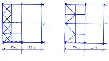 Рассмотрим схемы решетки связей по фермам пролетом 24 м