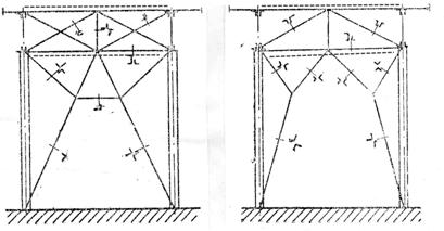В крестовой решетке сжатые элементы решетки теряют устойчивость и выходят из работы, а растянутые работают на растяжение и воспринимают нагрузку.