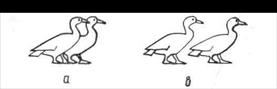 Если сравнить рис. 75,a с другим изображением, где две утки идут друг за другом (рис. 75,b), можно понять, что параллелизм между двумя птицами, который передает нашим глазам их связь между собой, выявляется более отчетливо, когда он выступает в пределах одной и той же визуальной единицы.