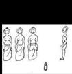 Такое расположение создает нужную симметрию, но неуклюже нагромождает богинь друг на друга, при этом изображение приобретает характер тотемического столба. Чтобы показать модель на горизонтальной плоскости, надо посредством наклонного расположения расширить пространство картины в третьем измерении. Очень часто в этом случае (но не всегда) имеет место оверлэппинг (рис.79,d). Наклон может быть произведен и по вертикали (рис.79,е). Задача усложняется, когда группа, которая должна располагаться симметрично по отношению к остальным группам, является не прямолинейной, а выполнена, например, в форме окружности. На рис. 80 показана композиционная схема календаря XII столетия. На святую Урсулу, окруженную своими служанками, нападает стрелок из лука. Группа является симметричной по отношению к зрителю, но не к стрелку из лука.