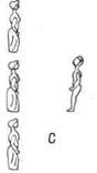 Подобным образом контраст между вертикально расположенным туловищем и наклоненной рукой производит более сильное впечатление тогда, когда два направления совпадают в пространстве внутри одной и той же зрительной единицы (рис. 76,а), а не тогда, когда он выражается последовательно, как это показано на рис. 76,b. Точно так же и в музыке, эффект гармонии или дисгармонии является более сильным, когда отдельные тона соединяются в один аккорд, а не проигрываются в какой-то последовательности. Следовательно, оверлэппинг интенсифицирует формальные взаимосвязи путем их концентрированной передачи в более сжатой модели. Единство, достигаемое благодаря частичному совпадению, имеет своеобразную особенность. Оно ослабляет целостность и завершенность, по крайней мере, одной, а то и всех участвующих частей. В результате достигается не просто «связь», то есть обмен энергией между независимыми объектами, а совместное объединение, взаимопроникновение посредством обоюдного видоизменения. Отказываясь от точности сопоставления, художник совершенствует более утонченное и более яркое понимание человеческого общения. Он показывает напряжение между противоречивыми тенденциями, имеющими место в социальных отношениях, и потребностью в защите целостности личности. Строго говоря, взаимопроникновение, вызванное частичным сов падением, не является обоюдным. Одна часть всегда остается наверху, неослабленной, и нарушает целостность остальных частей. Рис.77 передает довольно односторонний эффект. Царь Сетос изображен на переднем плане целиком, тогда как Изис, которая выражает его величеству свое божественное преклонение перед ним, нарисована в очень неудобном и необычном положении. Таким образом, создавая различие между доминирующими и второстепенными единицами, частичное совпадение устанавливает определенную иерархию. Шкала значений через ряд интервалов идет от пе реднего плана к заднему.