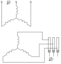 В случае подачи питания на обмотку ротора, образуется магнитное вращающееся поле, которое индуктирует в фазах статора и ротора ЭДС, в том случае, если пространственно оси фаз статора и ротора совпадают, ЭДС будут иметь одинаковое направление.