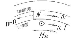 Следовательно, скорость поля относительно ротора будет равна: