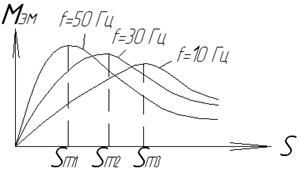 Рассмотрим, как влияет частота питающей сети на кривую момента: