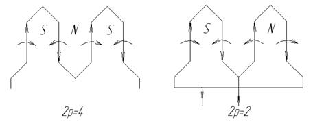 Недостаток: малый диапазон регулирования. 4. Изменение числа пар полюсов.