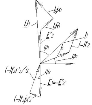 2) 3) Характер КПД обусловлен присутствием потерь в меди, которые пропорциональны квадрату тока и заставляют уменьшаться КПД. 4) Векторная диаграмма асинхронного двигателя объясняет характеристику