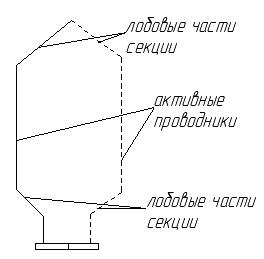 - если - если - если Чаще всего применяются обмотки с укороченным шагом. Такие обмотки помогают уменьшить потребление меди, за счет уменьшения лобовых частей обмотки и обеспечивают лучшую коммутацию. 1.лобовые части секции-это конструктивный элемент, участвующий в формировании секции. 2.активные проводники – участвуют в формировании ЭДС.