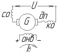 С.О. – серисная обмотка. Д.П. – обмотка дополнительных полюсов. К.О. – компенсационная обмотка. О.Н.В. – обмотка независимого возбуждения.