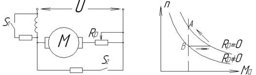 4)Торможение за счет включения активного сопротивления в цепь якоря.