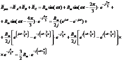 Каждый из токов создает пульсирующее магнитное поле, направленное вдоль оси своих катушек. Вектор магнитной индукции катушек пропорциональны токам катушек