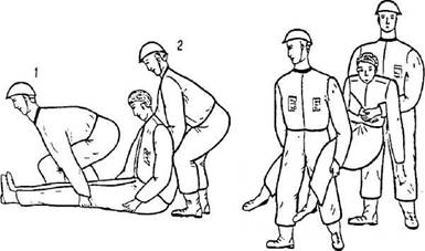 Рис. 4.8. Способ переноски на плечах при стоящем пострадавшем