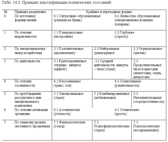 Принцип разделения состояний на те или иные категории объясняется ниже в Табл. 14.2.