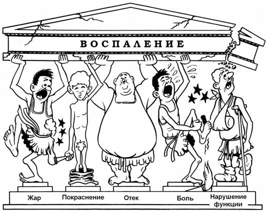 Рис. 10.1. Карикатура P. Cull на описание доктором A. A. Willoughby классических местных признаков воспаления.