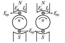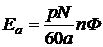где Несмотря на то, что ток в обмотке якоря переменный, во внешней цепи полярность ЭДС и направление тока неизменны, что обеспечивается коллектором, представляющим собой механический выпрямитель. ЭДС якоря равна ЭДС одной параллельной ветви, поэтому если обмотка имеет