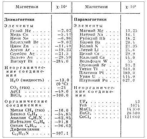 Магнитная восприимчивость большинства веществ (за исключением большей части диамагнетиков и некоторых парамагнетиков — щелочных и, в меньшей степени, щёлочноземельных металлов) обычно зависит от температуры вещества. У парамагнетиков магнитная восприимчивость уменьшается с температурой, подчиняясь закону Кюри — Вейса. У ферромагнетиков магнитная восприимчивость с ростом температуры увеличивается, достигая резкого максимума вблизи точки Кюри (см. эффект Гопкинса). Магнитная восприимчивость антиферромагнетиков увеличивается с ростом температуры до точки Нееля, а затем падает по закону Кюри — Вейса.[2] Магнитная восприимчивость почв Магнитная воприимчивость почв зависит от соотношения в ней диа-, пара-, и ферромагнетиков. Она возрастает в почвах, богатых окристаллизованными оксидами железа (что характерно в верхних горизонтах почв аридных районов), резко снижена в оглееных почвах и органических горизонтах, обыкновенно снижается при возрастании выветрелости первичных пород. Атомная (молярная) магнитная восприимчивость некоторых диамагнетиков и парамагнетиков (при нормальных условиях)*