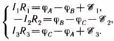 Для контуров АСВ ξ А, ACDA и CBDC, согласно второму правилу Кирхгофа, можно записать:
