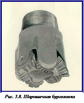 Для керноприемных устройств изготовляют шарошечные (рис. 3.8.), алмазные (рис. 3.9.), лопастные и ИСМ бурголовки, предназначенные для бурения в породах различной твердости и абразивности. ГОСТ 21210 предусмотрено выпускать шарошечные и лопастные бурильные головки диаметрами от 76,0 до 349,2 мм.