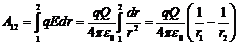 Здесь r1 и r2 - кратчайшие расстояния точек до заряженной поверхности (вдоль силовой линии). Разность потенциалов между двумя точками внутри шара равна