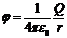 Положив r1=R, r2= ∞, найдем потенциал поверхности сферы: