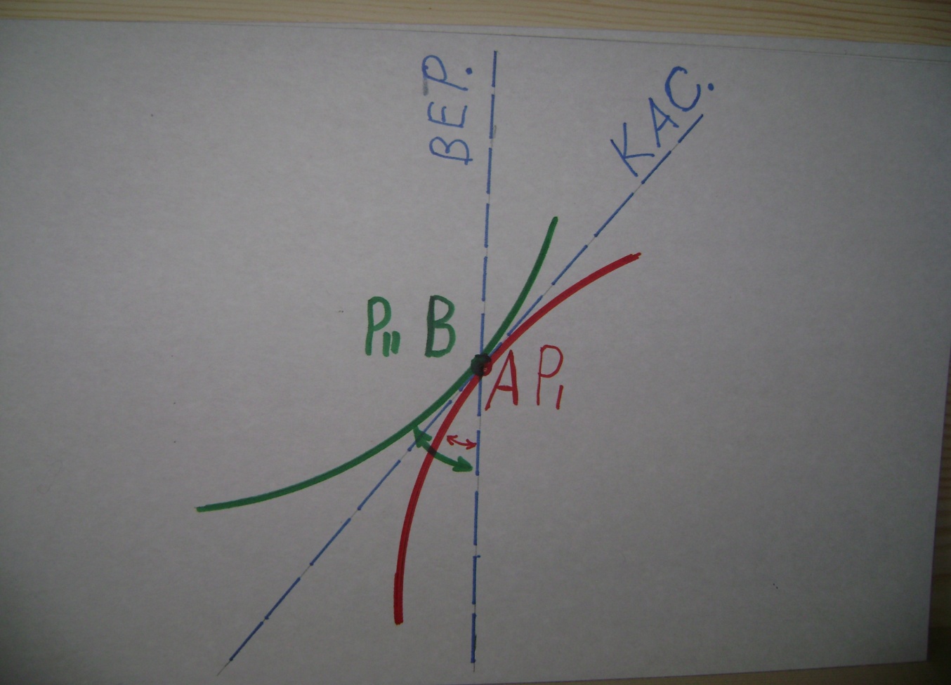 Рычаг весов А.В. – рассматриваем в качестве диаметра окружности (мнимой, условной). Точка О – центр этой окружности. К точке А, расположенной на окружности, можно провести Касательную линию, и причём только одну. К точке В.- тоже касательную, тоже Касательные всегда перпендикулярны диаметру окружности. Следовательно касательная А параллельна касательной В, так как это два перпендикуляра к одной прямой линии (диаметру). Дальше, если они параллельны друг другу, значит по отношению к Вертикали находятся под одним и тем же углом (наклона). Дальше, для того, чтобы сравнить выпуклую наклонную плоскость АА(1) и вогнутую наклонную плоскость ВВ(1) нужно произвести следующие геометрические НАЛОЖЕНИЯ. Наложим выпуклую и вогнутую плоскости друг на друга. Что в результате имеем -? Вертикали сливаются в одну – по определению. Касательные сливаются, так как имеют одинаковый угол наклона по отношению к Вертикали. (.) А совмещаем с (.) В. Не сливаются только выпуклая и вогнутая наклонные плоскости. Плоскости не сливаются – значит они имеют разный Угол Наклона. Примечательно, что наклонные плоскости находятся по разные стороны по отношению к касательной. Выпуклая АА(1) – стремится к вертикали, вогнутая ВВ(2) повёрнута к горизонтали. Разница маленькая, но она есть. И именно из за этой Разницы в наклоне плоскостей два одинаковых по величине веса перетягивают друг друга. И только в горизонтальном положении – полное равенство по всем параметрам.