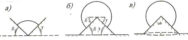 Рис.43. Схема взрыва на дне ущелья, гребне горного хребта, вершине горы