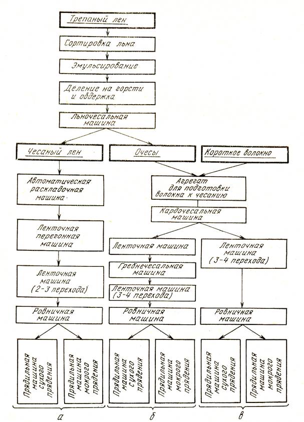 Рис. 5.1 Схема переходов в различных системах льнопрядения: