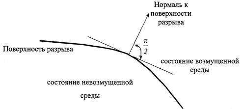 Рисунок 1 – Схематическое изображение фронта ударной волны Состояние среды до и после разрыва характеризуется следующими параметрами: скоростью ударной волны, плотностью среды, скоростью потока среды.