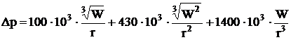 где r – расстояние от центра облака до точки измерения, м; W – масса тротила, энергия которого равна энергии взрывающейся газовой смеси, кг. К сожалению, данных по измерению импульса на фазе сжатия известно значительно меньше, чем по измерениям избыточного давления, а также более низка их точность. Характер изменения импульса ударной волны аналогичен изменению избыточного давления. На основе имеющихся данных численное значение импульса можно определить по зависимости