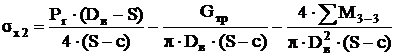 где Рr – расчетное давление в аппарате, Па; Dв – внутренний диаметр аппарата, м; S – толщина стенки аппарата, м; с – прибавка к толщине стенки, м, Gтр – вес участков колонны, расположенных выше трещины при рабочих условиях, Н; ΣМ3-3 – изгибающий момент от совместного действия ветровой и ударной нагрузки в расчетном сечении 3–3 (место приварки корпуса аппарата к опоре), Н·м. Эквивалентные напряжения рассчитываются по формулам: