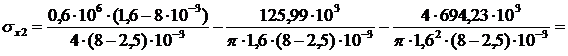 Окружные напряжения (только от внутреннего давления в аппарате) по формуле (38):