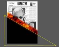Разверните список Mask 1 и нажмите по пиктограмме часов возле параметра Mask path (Путь маски). Перейдите к последнему кадру композиции, нажав клавишу <End>. Выберите инструмент Selection tool (Выделение) на панели инструментов и выделите им группу Mask 1 на панели временной шкалы. После чего перейдите к маске и переместите узлы, расположенные на гранях таким образом, чтобы нижнее изображение полностью открылось. Также измените параметр Mask feather (Перо маски), чтобы размыть границы маски и воспроизведите композицию. Мы получили анимацию сгорающей бумаги, однако для большей реалистичности необходимо скрыть сгоревшие слои. Для этого создайте новую композицию того же размера. После чего добавьте в новую композицию материалы созданного ранее проекта. Сочетанием клавиш <Ctrl>+<Y> создайте новый сплошной слой черного цвета и поместите его над материалами добавленной композиции.