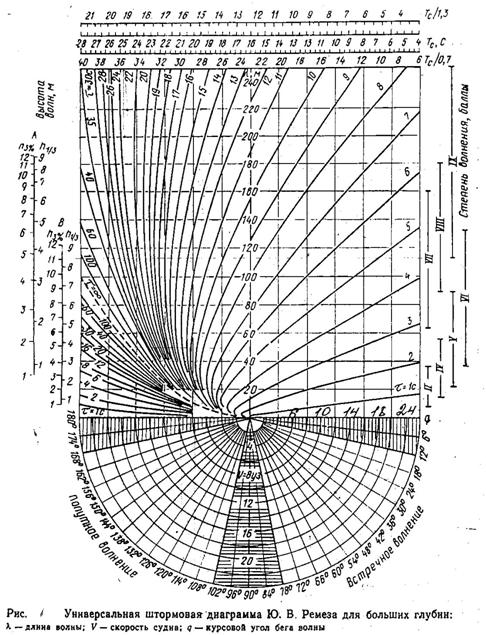 Задача 3. Определить благоприятен ли курс т/х "Ленинский Комсомол." (В=21,8 Тθ=9,72 h=1,1 м) на волнении с λ = (по заданию) при U=17уз., курс судна 1200, направление бега волн 900. Варианты заданий