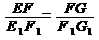 Сначала построим какой-нибудь квадрат, у которого две вершины лежат на прямой АВ и еще одна – на стороне АС. С этой целью возьмем произвольную точку Е1 на стороне АС, проведем перпендикуляр E1D1 к прямой АВ и далее построим квадрат. Доказательство. В самом деле, из подобия треугольников AE1F1 и AEF следует, что