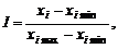 де xi — фактичне значення i -го показника; xi min та xi max — відповідно мінімальне та максимальне значення i -го показника. Для розрахунку індексу очікуваної тривалості життя при народженні I 1 мінімальне значення беруть таким, що дорівнює 25 рокам, а максимальне — 85 рокам, тоді формула для розрахунку має вигляд: