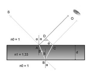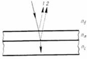 На поверхность оптического стекла наносят тонкую пленку. Для того чтобы волны 1 и 2 ослабляли друг друга, должно выполняться условие минимума. В отраженном свете разность хода волн равна: