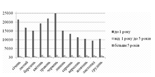 Рис. 5. Динаміка обсягу кредитування в 2014 році за строками позики.