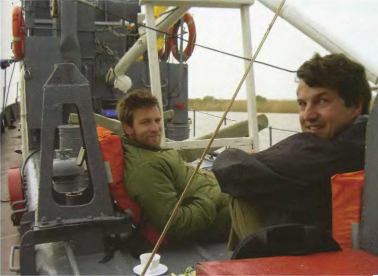 Эван и Клаудио на рыбацкой лодке в Каспийском море. Клаудио, наш оператор – невоспетый герой этого путешествия.
