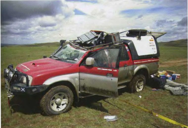 Когда этот фургон два раза перевернулся, в нем были Расс и Василий. Как ни странно, серьезно никто не пострадал.