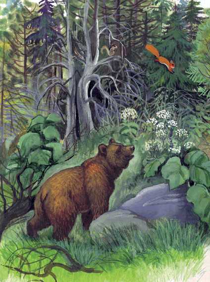 В глухих хвойных лесах – тайге – живёт бурый медведь. В русских сказках его с почтением величают хозяином тайги, Косолапым или Топтыгиным.
